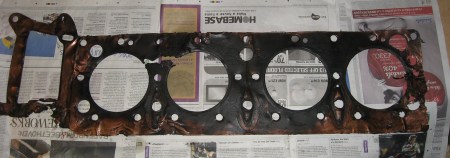 For purposes of obtaining a quotation this customer sent some images of the old gasket with L x W and thickness dimensions. Because the old gasket was so mangled he also sent a page from an old Payen (UK) gasket catalog.