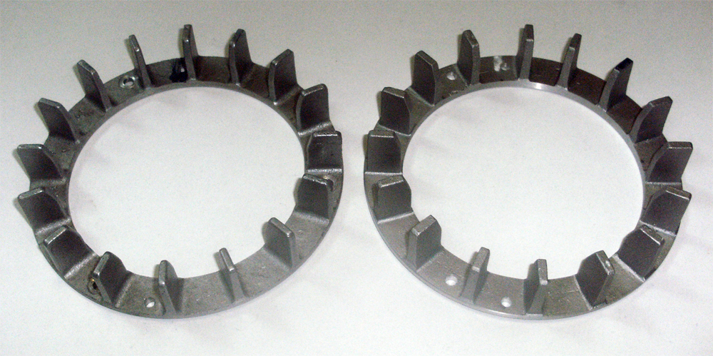 Pattern pump on left, finished pump on right with bearing and seal installed